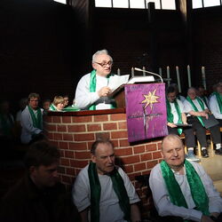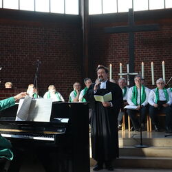 Zum Abschluss bedankte sich der Pfarrer bei den Besuchern, dem Chor und den Solisten für den wunderbaren Gottesdienst. Alle zusammen sangen fröhlich das `Glory Hallelujah´. Thomas Stählker spielte noch ein getragenes Trompetensolo und so mancher Gast ging nachdenklich in den Samstagabend.