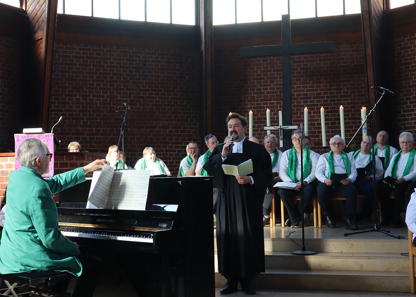 „Abschied und Neuanfang – das bedeutet Dinge loslassen und gemeinsam Neues wagen“, eröffnete Pfarrer Dr. Eike Christian Herzig den diesjährigen inklusiven Gottesdienst in der Erlöserkirche. Er selbst stand zum ersten Mal beim Gottesdienst mit dem Westfalenfleiß-Gospelchor vorne in der Kirche und löste damit den langjährigen Pfarrer Reinhard Witt ab. Dieser ist in den wohlverdienten Ruhestand gegangen, hat es sich aber nicht nehmen lassen, als Gast dabei zu sein – Abschied und Neuanfang!