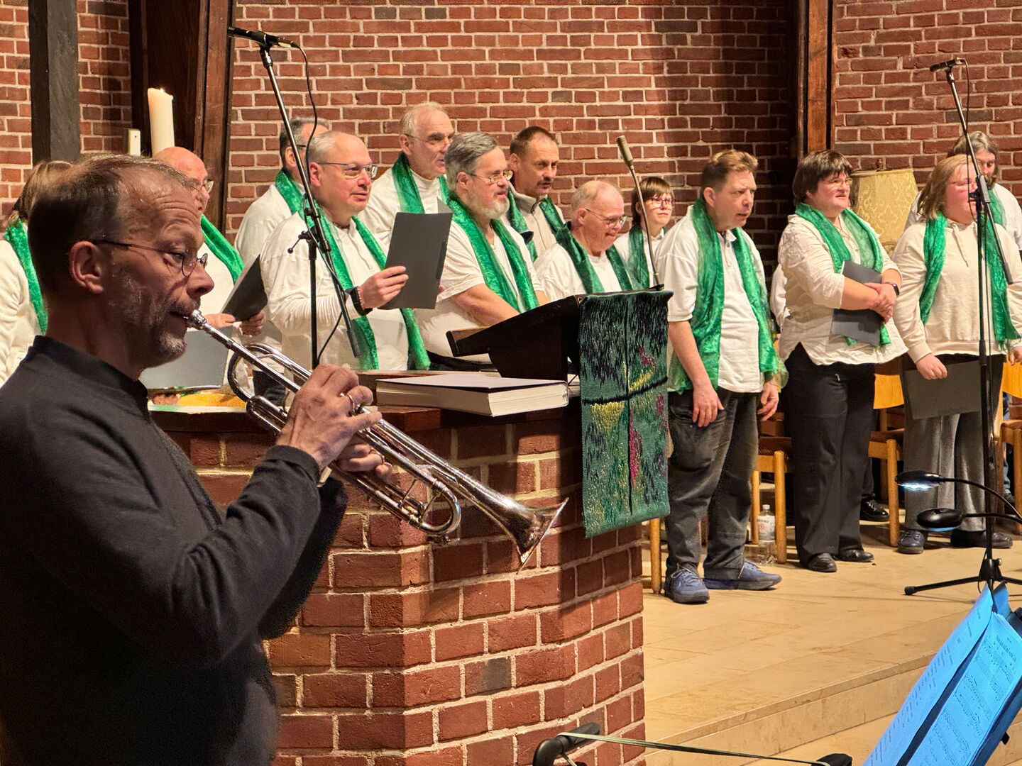 Es war bereits das 44. Konzert unseres Gospelchors, das Motto für den Auftritt in der Erlöserkirche war „Mich trägt mein Traum“. Die Leitung hatte erneut Leo Michalke übernommen, unterstützt wurde er an diesem Abend vom Trompeter Thomas Stählker und Pianisten Christian Przybyl.