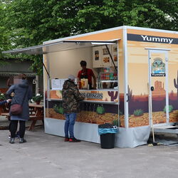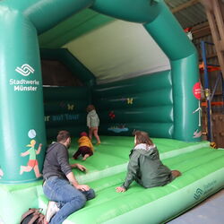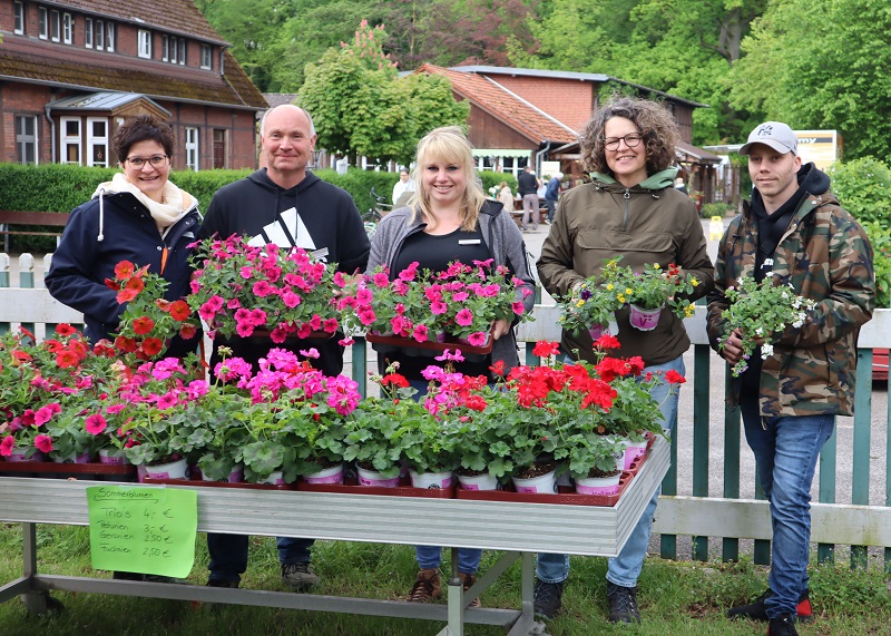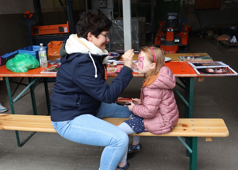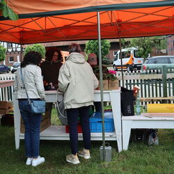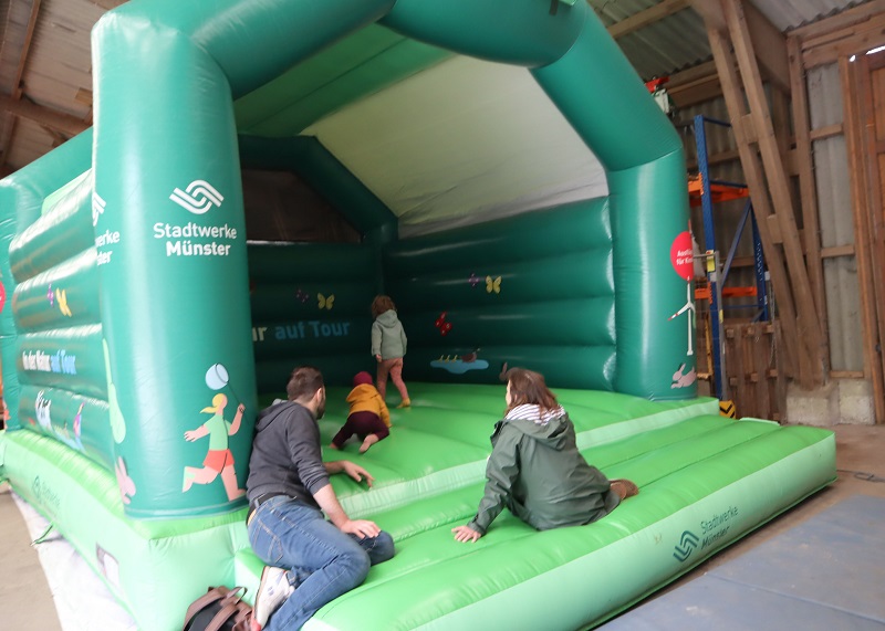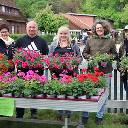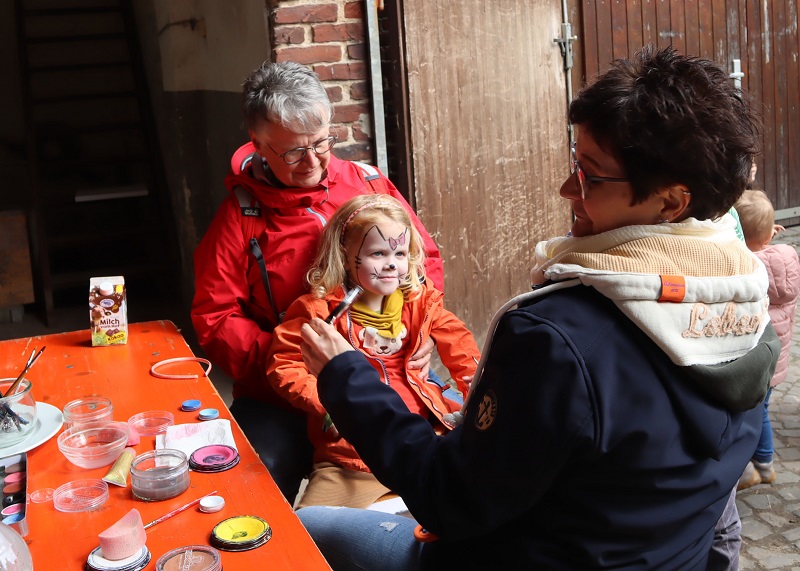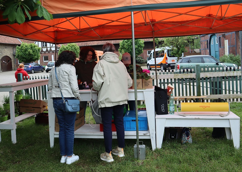 Auch sonst gab es auf Gut Kinderhaus an diesem Tag einiges zu erleben. Die Gärtnerei der Westfalenfleiß GmbH bot in einem Sonderverkauf verschiedene bunt blühende Stauden und Kräuter zu moderaten Preisen an und stand den Käufer*innen mit guten Tipps zu Standorten und Pflege der Pflanzen zur Verfügung. Hüpfburg und Kinderschminken als Begleitprogramm kam vor allem bei den jungen Familien gut an. Und viele Besucher*innen genossen Pommes, Bratwurst, Chicken-Wings und afghanische Burger vom Foodtruck Yummy, der seinen festen Standort in der Stadt Senden hat. „Es war für alle etwas dabei an diesem Wochenende“, fasste Ramona Schenk, Fachleiterin der Westfalenfleiß-Gärtnerei, am Ende des Tages zusammen. „Und auch wir sind sehr zufrieden mit der guten Resonanz“.