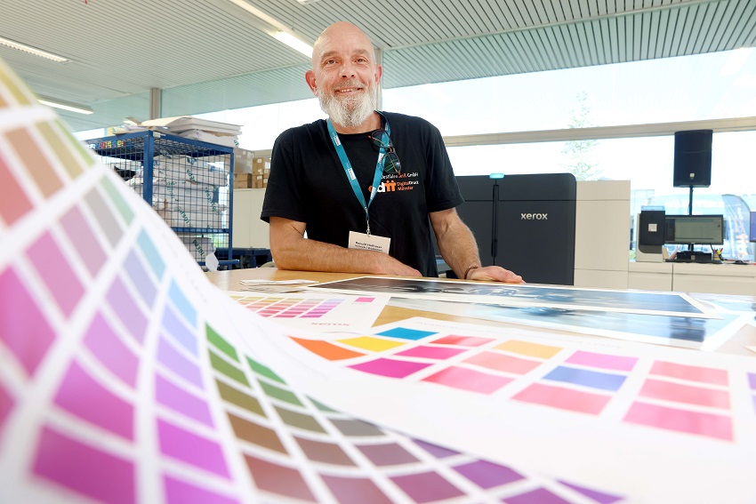 Seit Anfang Juni 2023 sind im Digitaldruck und Lettershop von Westfalenfleiß zwei neue Maschinen im Einsatz, die auf dem aktuellen Markt ihresgleichen suchen – die eine druckt schwarz-weiß, die andere in Farbe. Mit dieser Investition von Westfalenfleiß steigen die Aufträge – ob Magazine, Kinderbücher, Plakate, Flyer, Einladungskarten oder Hausarbeiten von Studierenden. „Wir sind zu einer ernst zu nehmenden Druckerei in Münster herangewachsen. Das Besondere an uns ist, dass wir neben großen Aufträgen mit einer hohen Auflage auch kleinere Aufträge von Privatleuten übernehmen. Wir sind sehr flexibel“, so Ronald Hofhüser.