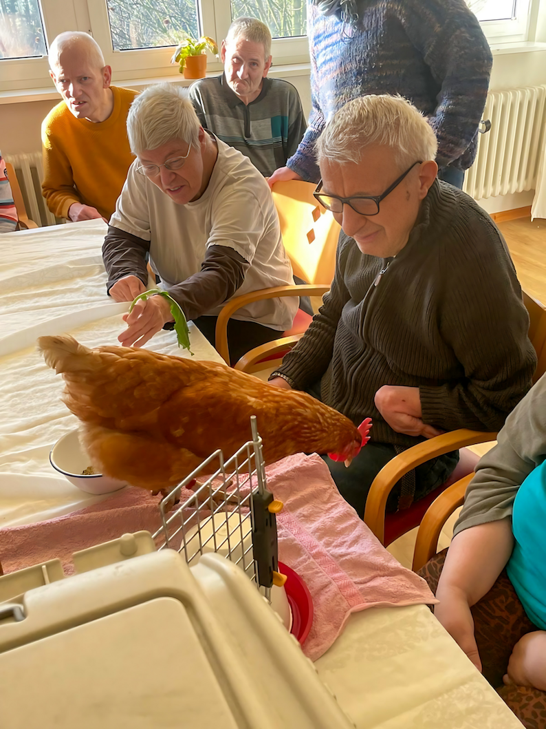 Während in den Sommermonaten Ponys für leuchtende Augen sorgen, sind es in der kälteren Jahreszeit die gefiederten Gäste, die für Freude und Nähe sorgen. Die Tiergestützte Intervention bietet damit eine Oase der Ruhe und stärkt soziale Kontakte.