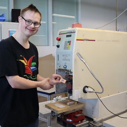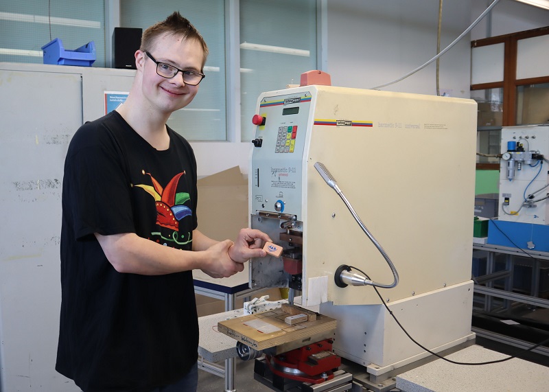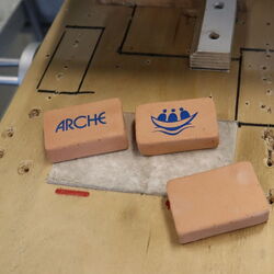 Und? Was hat das Ganze mit Westfalenfleiß zu tun? Über einen privaten Kontakt zu Christian Schmitz, stellv. Betriebsstättenleitung stellte Andreas Lubahn die Anfrage, ob die kleinen Ziegelsteine in der Werkstatt am Kesslerweg mit dem Arche-Logo bedruckt werden können. Die Druckversuche an der Tampondruckmaschine waren erfolgreich und so stand der Deal. Mit bereitwilliger Zustimmung von Hannelore Böhnke-Bruns, Sprecherin der Geschäftsführung und Franziska Trappe, pädagogische Geschäftsführung bot Christian Schmitz den Archevertretern an, den Druck durchzuführen, ohne den Auftrag in Rechnung zu stellen.