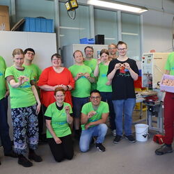 Die acht Mitwanderinnen und Mitwanderer der Arche Tecklenburg kamen zusammen mit ihrem Einrichtungsleiter André Slaar persönlich in die Werkstatt am Kesslerweg, um sich zu bedanken. „Wir freuen uns sehr, dass ihr das für uns macht. Das ist ein großzügiges Geschenk,“ freut sich André Slaar. 50.000 € sind das Spendenziel. Wir drücken die Daumen, dass es klappt!